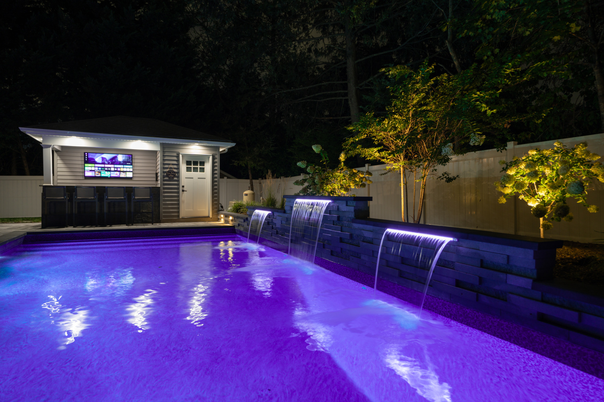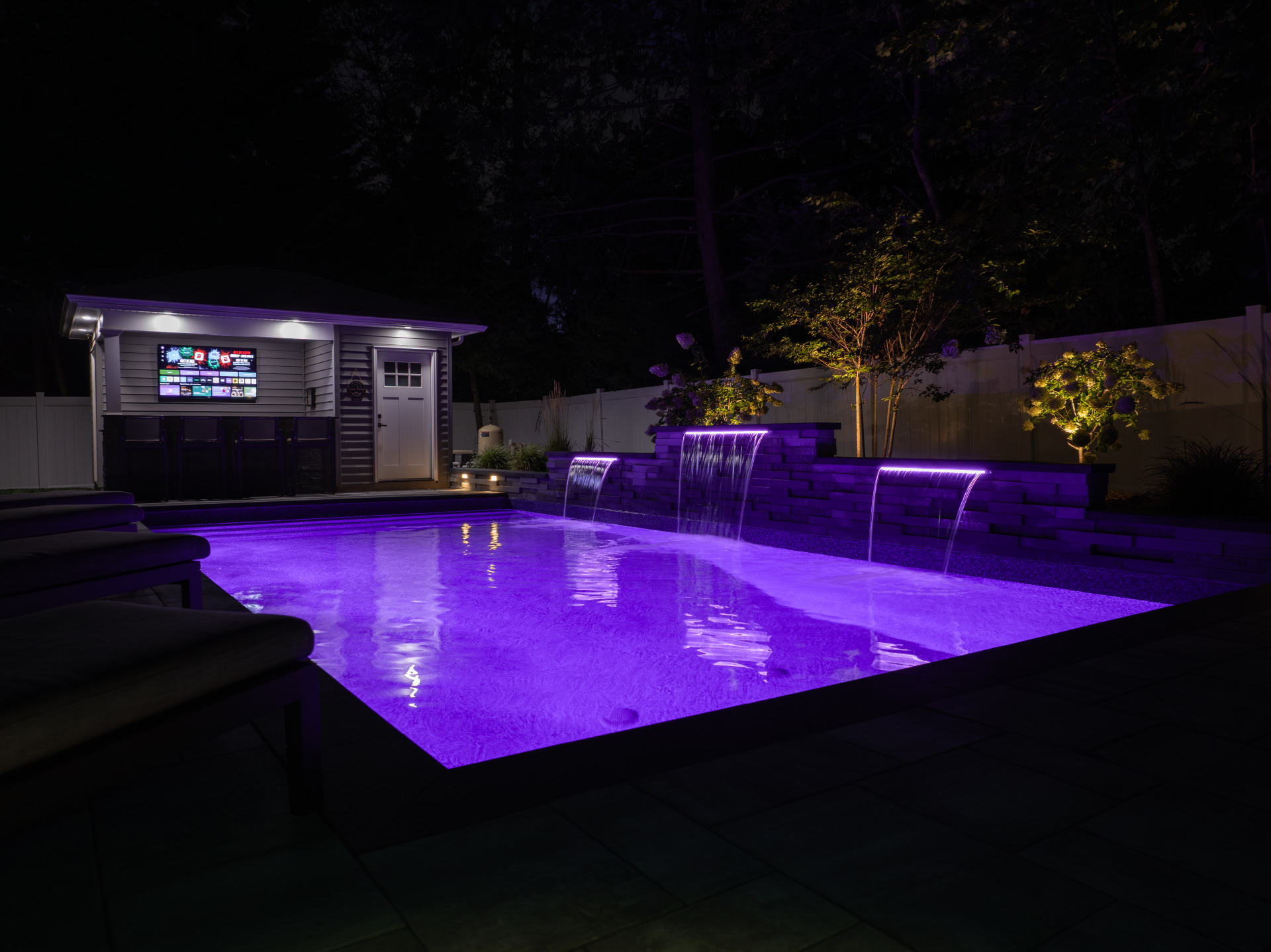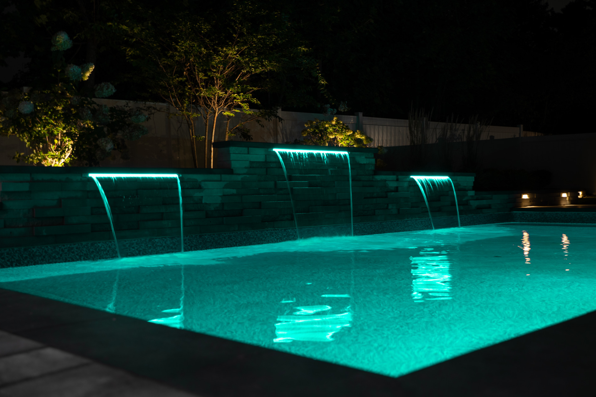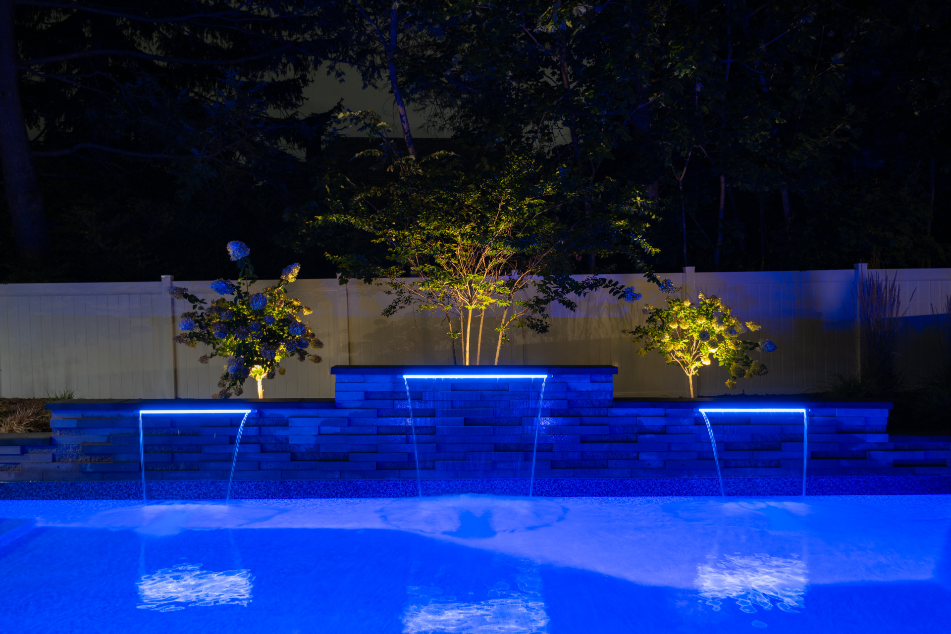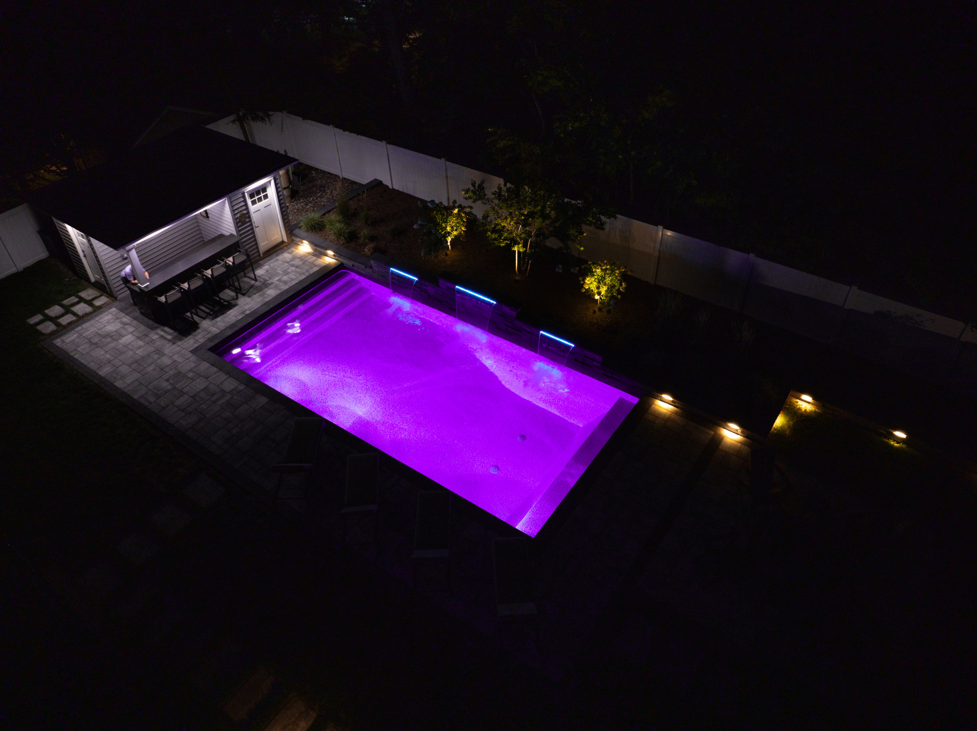 Type: Vinyl LinerSize: 16′ x 32′Liner: Kayden Manufacturing, “Indigo Reef, Full Floor”Coping: Cambridge Crusader Cap, “Coal”Patio: Cambridge, “Limestone Quarry Blend,” Smooth XL 3 Piece